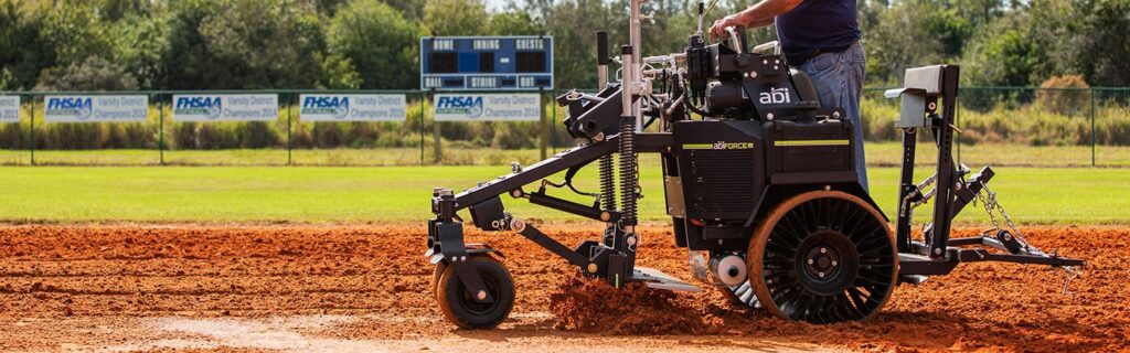 The Force is a stand-on zero-turn machine that’s ideal for sports turf grooming, lawn installation, and seedbed prep. With a full family of custom, innovative attachments, the Force allows infield groundskeepers, turf managers, and landscape contractors to get work done faster, more efficiently, and better than ever before. Built with patented Responsive Variable Force Technology, the Force enables a smaller footprint, zero-turn platform to do the work of much larger and heavier equipment. Learn more about the Force or talk to a product specialist at (877) 788-7253.