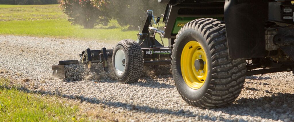 Land planes are often used for maintaining driveways, especially when it comes to moving or grading material. But in order to eliminate potholes and re-level your ground, you need to be able to get to the base of the problem. Which is why here at ABI, we don’t settle for a straight leveler, we recommend using an implement that digs deep rather than simply grading the top level like a land plane grader. This is a huge reason ABI utilizes durable scarifiers on our groundwork implements—so you can eliminate the compaction points that will keep causing you issues if they are simply graded over.