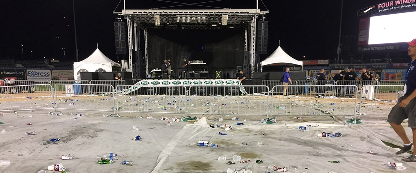 Post-concert is when your field crew has the most work. As concertgoers exit, assess for any clean up around the field such as trash left behind by guests and areas of special concern for turf health.