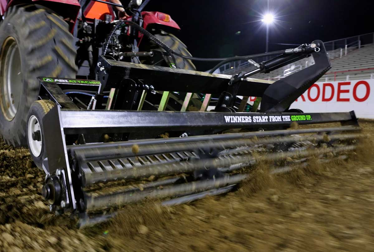 Horse people all over the U.S. know and love the TR3®. We decided to take our famous Arena Drag up a notch for the Rodeo scene. Now with Hydraulic scarifiers you can rip up hard spots while dragging, without getting off the tractors. The rolling basket is a perfect addition for Rodeo sport, to give the ground that final press of firmness (your barrel racers will thank you), while keeping the layer underneath light enough for a soft landing (your bull riders will thank you). This is the TR3® made for the spotlight. Finally arenas can be truly RODEO READY!