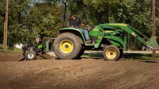 The TR3® was designed to sit at an angle so all ground contact points work simultaneously: loosen, level, and rake on every pass! Foam-filled stabilizing wheels work in tandem with the 3-point hitch to keep the tool level, making it easy to operate & achieve professional results!