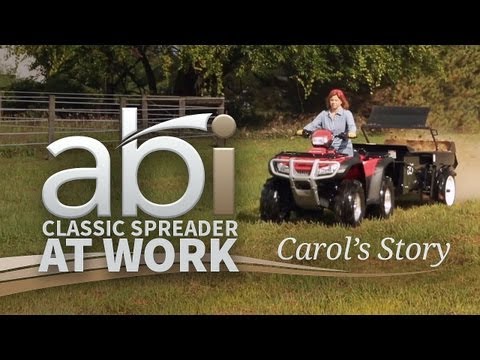 Hi, I’m Carol Williams and welcome to my farm. I’m the proud owner and user of an ABI spreader. I have the fifty size model. It’s the perfect size spreader for my operation with the two horses. It takes care of everything we need it to do.