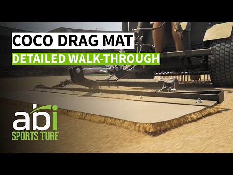 What we’ve got here on the mat itself is we’ve got an 18 inch piece of coco fibers that actually bolt directly to a leveling drag bar off the front. We’ve got a six foot reach here on the drag bar, which is great. If you’ve got any material movement that happens during the games, you’re able to kind of level that conditioner out as you groom.